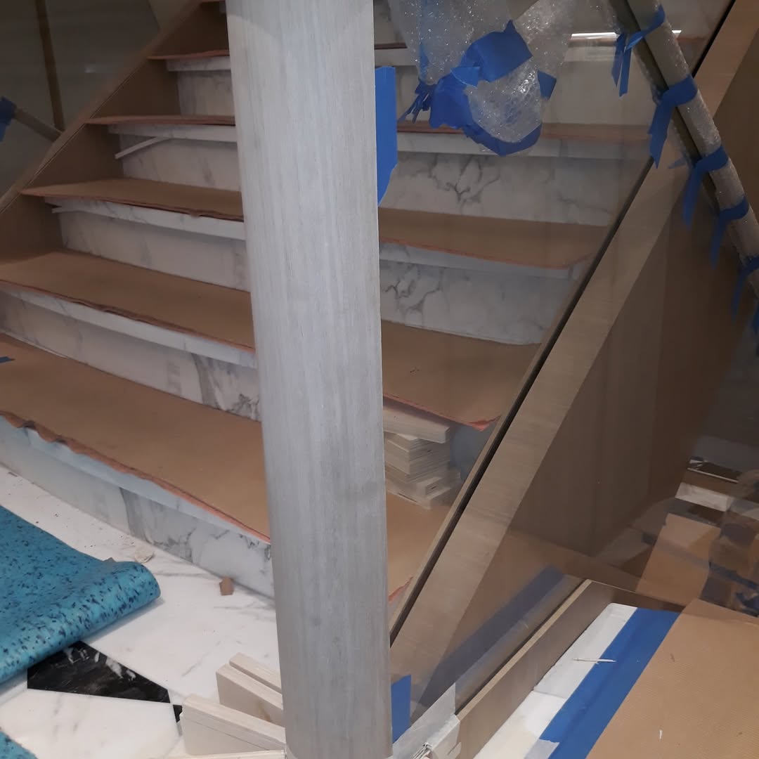 Detailed inspection of all staircase elements, identifying wear areas, inconsistencies in tone, and previous finish imperfections that required correction.