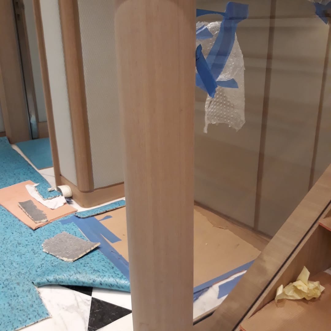 Application of a high-performance water-based varnish system, selected for its durability, clarity, and suitability for luxury yacht interiors.